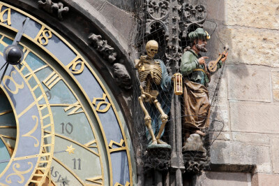 Am Altstädter Rathaus wird das Gedrängel enger, je näher das Schauspiel der Astronomischen Uhr rückt, die den Turm des Rathauses ziert. Zu jeder vollen Stunde zieht ein Gerippe an einem Seil, läutet mit einem Glöckchen und an zwei sich öffnenden Fenstern oberhalb der Uhr defilieren die zwölf Apostel vorbei. Das Spektakel endet rasch und ist eigentlich gar nicht so eindrucksvoll wie wir gedacht hatten.