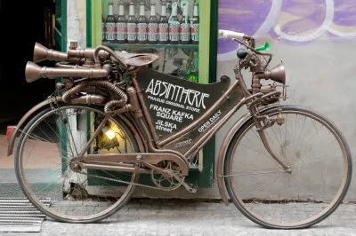 Eine große Glaskuppel filtert das Licht vor dem Kino "Lucerna" und taucht die messingglänzende Szenerie in ein hellblaues Licht. Hier begegnen wir zum ersten Mal einem Werk des bekannten Popkünstlers David Černý, der unkonventionell, wenig respektvoll, provokativ mit der tschechischen Geschichte umgeht.
